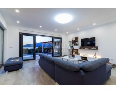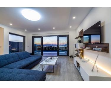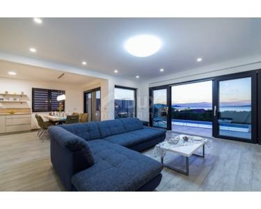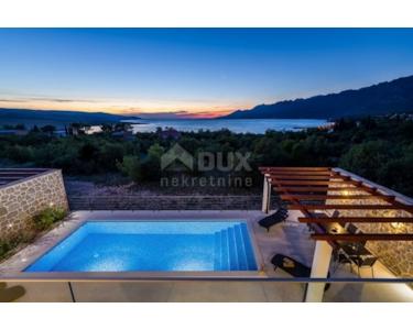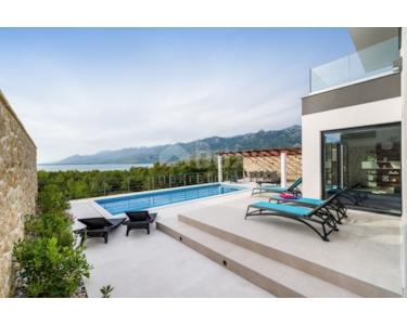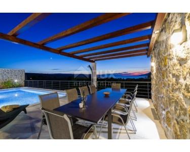 Villa mit Pool in der Nähe von Starigrad Paklenica mit wunderschönem Meerblick zu verkaufen. Die Gesamtwohnfläche beträgt 216 m2. Die Villa besteht aus zwei Etagen und einer Dachterrasse. Das Erdgeschoss besteht aus einer Küche und einem geräumigen Wohnzimmer, das sich auf einen mit Brac-Stein gepflasterten Innenhof mit Swimmingpool und Sonnendeck öffnet. Im Erdgeschoss befinden sich ein Badezimmer, ein Nebenraum und eine Garage, die sowohl vom Flur als auch von außen zugänglich ist. Auf der ersten Etage befinden sich vier Schlafzimmer, zwei mit eigenem Bad, und ein weiteres Gemeinschaftsbad und eine große Terrasse. Auf der obersten Etage befindet sich eine große Terrasse, die teilweise überdacht ist, einen Whirlpool, eine kleine Bar und eine Lounge bietet.Die Terrasse bietet einen schönen, offenen Meerblick,