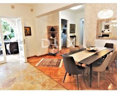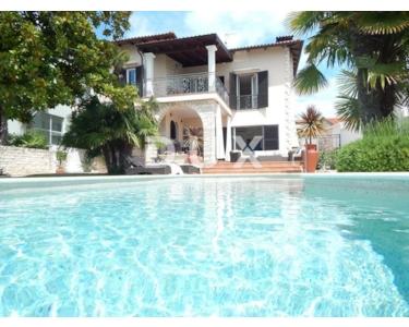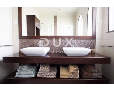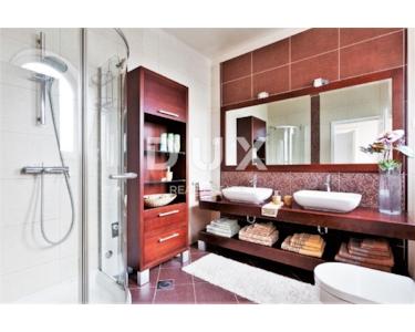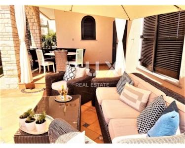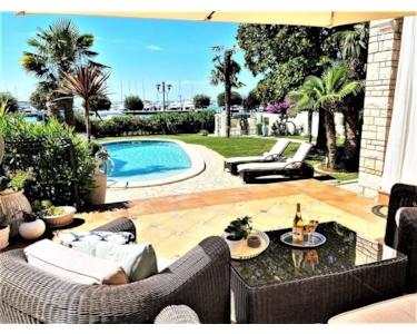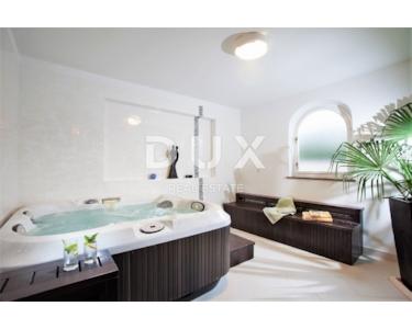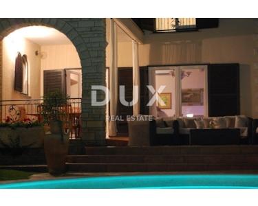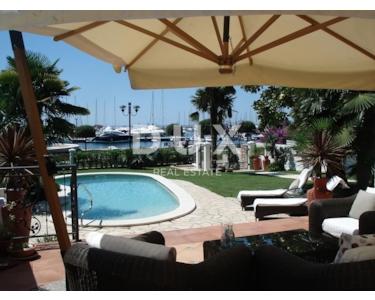 In exklusiver Lage, 30 Meter vom Meer und 150 Meter von den Stränden entfernt, steht diese wunderschöne Villa im mediterranen Stil zum Verkauf, erste Reihe zum Meer, mit Außenpool, Whirlpool, Fitnessraum und wunderschönem Garten mit mediterranen Pflanzen. Die Villa ist mit einem handgefertigten schmiedeeisernen Zaun eingezäunt. Die Villa befindet sich in einer großartigen Lage für Yachtbesitzer und Segelbegeisterte, da sich der ACI-Yachthafen direkt vor dem Grundstück befindet. Es wurde nach hohen Standards renoviert, wobei viele seiner ursprünglichen Stein- und Marmormerkmale erhalten blieben und Moderne und Tradition erfolgreich kombiniert wurden, und es ist mit traditionellen italienischen Möbeln ausgestattet. Die Schlafzimmer und das Wohnzimmer haben Eichenböden, und die Flure und Küchen haben Terrakottafliesen oder Marmorböden. Die Badezimmer bestehen aus hochwertigen italienischen Fliesen und Sanitärkeramik. Auf einem Grundstück von 892 m2 befindet sich eine Villa mit einer Gesamtfläche von ca. 480 m2 auf zwei Etagen. Die Villa besteht aus drei Wohneinheiten, dem Hauptteil auf zwei Etagen und zwei Wohnungen mit separaten Eingängen. Das Erdgeschoss des Hauptteils der Villa besteht aus einem Wohnzimmer mit Marmorkamin und Zugang zu einer überdachten Terrasse, einem Esszimmer, einer voll ausgestatteten Küche, einem Schlafzimmer und einem Badezimmer. Im Erdgeschoss gibt es auch eine Sommerküche, die über einen Außenkamin mit Marmortisch verfügt und mit dem Garten verbunden ist, wo sich ein Swimmingpool mit Düsen, ein Wasserfall für Massagen, Nachtbeleuchtung und Winter- und Sommerabdeckung befindet. Im Erdgeschoss gibt es einen separaten Eingang, der zum Wellnessbereich führt, der aus einem Fitnessraum, einem Whirlpool und einem Badezimmer besteht. Im ersten Stock der Villa befinden sich eine Eingangshalle, zwei Badezimmer und vier Schlafzimmer. Zwei Schlafzimmer haben Zugang zu einem geräumigen Balkon mit herrlichem Meerblick, und die anderen beiden Schlafzimmer haben ebenfalls einen Balkon mit schöner Aussicht. Die beiden anderen Wohneinheiten haben separate Eingänge, was für zusätzliche Privatsphäre sorgt. Die erste Wohnung besteht aus Wohnzimmer, Küche, Bad, Balkon und einem Schlafzimmer. Im Obergeschoss befindet sich die zweite Wohnung, die aus einem Wohnzimmer, einer Küche mit Essbereich, zwei Schlafzimmern, einem Badezimmer und einem Balkon besteht. Auf der Rückseite der Villa befinden sich drei bis vier Parkplätze. Die Villa befindet sich in einem Wohnviertel der Stadt Umag in der Nähe des Zentrums und der Altstadt, aber in einer ruhigen Umgebung. Strände und alle wichtigen Sport- und anderen Einrichtungen sind nur einen kurzen Spaziergang entlang der Küste von der Villa entfernt.