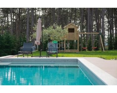 In der Nähe von Labin steht eine modern gestaltete und luxuriös ausgestattete Villa zum Verkauf. Die Villa von 470m2 hat 320m2 Wohnfläche. Es besteht aus Wohnzimmer, Küche mit Essbereich, Abstellraum, Toilette, Schlafzimmer mit eigenem Bad und Wellnessbereich im Erdgeschoss und drei Schlafzimmern mit eigenem Bad im Obergeschoss. Diese Luxusvilla ist mit hochwertigen Geräten und Möbeln ausgestattet und wird auch so verkauft. Auf einem vollständig angelegten Garten von 1230m2 befindet sich ein Swimmingpool mit Sonnendeck und Parkplätzen. Diese moderne Villa in einer natürlichen Umgebung erreicht ein ausgewogenes Erlebnis und ist ideal für Entspannung und Erholung oder für das Familienleben.
