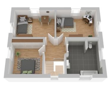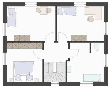 In diesem mediterran gestalteten Haus genießen Sie einen Komfort, den Ihnen für gewöhnlich nur ein größeres Haus bieten kann. Viel Platz und genügend Stauraum für die Familie. Von der Haustür bis unter den Dachfirst ist dies ein Haus für die junge Familie. Die Gestaltung des Erdgeschosses bietet Ihnen die Möglichkeit eines gemeinschaftlichen Zusammenlebens. Platz für einen großen Esstisch und das Familiensofa sorgen dafür, dass Sie hier viele Aktivitäten mit der Familie gestalten können. Auch an Tagen die nicht zum rausgehen einladen. Die Küche ist groß genug um einen Frühstückstisch aufzustellen oder an Weihnachten als Backstube zu dienen. Kinder freuen sich über die 2 identischen Zimmer im Obergeschoss, denn so kann es keinen Streit geben. Auch das Schlafzimmer verfügt über genügend Stellfläche für ein Bett und Schränke. Und das Beste: Sie können daran auch etwas ändern. Gerne Planen wir mit Ihnen alle Ihre Vorstellungen und Wünsche in ein individuelles Bauvorhaben ein. Ob Ihr Haus größer oder kleiner werden soll, eine Dusche im Gäste-WC braucht, wir helfen Ihnen dabei Ihren Traum vom perfekten Eigenheim zu realisieren. Damit Ihr Haus genau so individuell wird wie Sie, der Bauherr! Ein weiterer Vorteil des Hauses ist sein Preis/Leistungsverhältnis, welches gerade jungen Familien genügend Spielraum bietet in Kombination mit der modernen Bauart die schon ab dem Einzug beim Sparen von Energie hilft. Außerdem verfügen unsere Häuser über Vaillant Technik der neuesten Generation . !!!