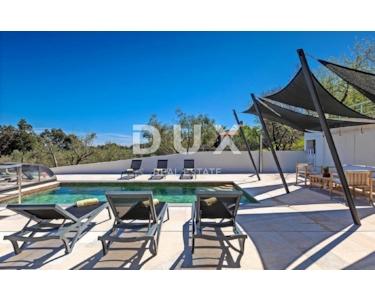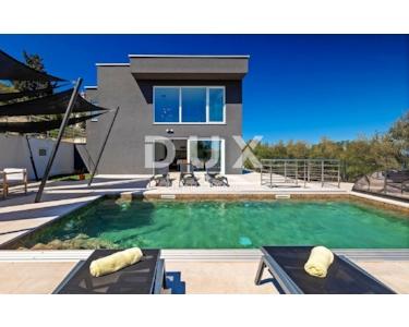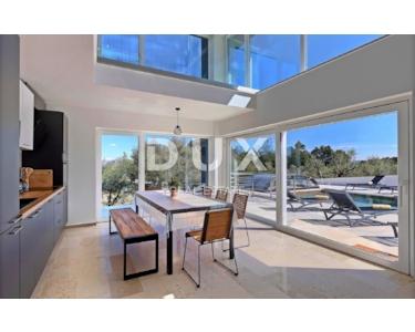 An der Südostküste Istriens, an der Stelle, wo grüne Hügel auf das Meer treffen, wo Natur und Erbe zusammenkommen, gibt es zwei Städte von ähnlicher Größe, aber mit unterschiedlichen, aber sich gegenseitig ergänzenden Charakteren - Labin und Rabac, nur fünf Kilometer voneinander entfernt. Rabac wird aufgrund seiner weißen Kiesstrände, der üppigen mediterranen Vegetation und des kristallklaren Meeres als Perle der Kvarner-Bucht bezeichnet. Einst ein kleines Fischerdorf, ist Rabac heute ein attraktives Touristenziel, das eine Fülle kultureller Veranstaltungen in einem Netz bunter Straßen verbirgt. Die grüne Umgebung von Rabac und das malerische Hinterland laden das ganze Jahr über zu Abenteuer, Forschung und Erholung ein. Unweit von Rabac und Labin in einer kleinen Siedlung am Meer steht eine moderne Villa am Meer zum Verkauf. Die neu erbaute Villa wurde mit hochwertigen Materialien gebaut. Das minimalistische, moderne Interieur betont den offenen Raum mit Glaswänden, die viel natürliches Licht und einen Panoramablick auf das Meer ermöglichen. Die 200 m2 große Villa erstreckt sich elegant durch das Erdgeschoss und den ersten Stock. Das Erdgeschoss besteht aus einer Küche mit Esszimmer, einer Speisekammer, einer Toilette und drei Schlafzimmern mit eigenen Badezimmern. Im ersten Stock gibt es ein gemütliches Wohnzimmer mit Kamin, eine Toilette und ein Schlafzimmer mit eigenem Bad. Neben der Villa befindet sich ein beheizter Pool von 32 m2 mit Sonnendeck und Loungebereich. Der Hof ist komplett eingezäunt und begrünt. Diese Villa am äußersten Rand des geschützten Küstengebiets ist eine ideale Gelegenheit für Familienleben, Ruhe und Entspannung oder als Investition zur Vermietung für touristische Zwecke.