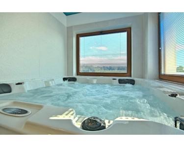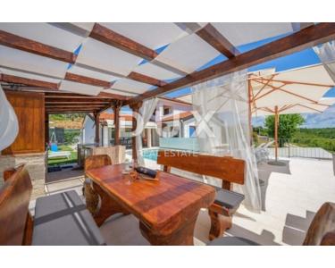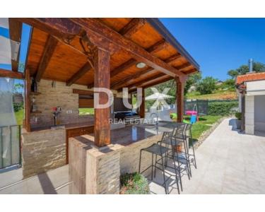 Wir haben eine schöne Villa mit Swimmingpool zum Verkauf, die sich auf einem Grundstück von 558 m2 befindet und die Gesamtwohnfläche 203 m2 beträgt. Im Erdgeschoss des Hauses gibt es ein offenes Wohnzimmer mit Küche und Esszimmer, zwei Schlafzimmer, eine Waschküche und drei Badezimmer, von denen eines über einen Whirlpool verfügt. Im Obergeschoss befindet sich ein weiteres Schlafzimmer mit eigenem Bad, Kleiderschrank und Zugang zur Terrasse. Der Hof bietet Einrichtungen für alle, von einer Kinderecke bis hin zu einer Außenküche mit Grill und einem wunderschön dekorierten Bereich zum Sonnenbaden am Pool. Grill, hübsch dekorierter Sonnenbereich neben der Basis.Außerdem gibt es im Garten eine Taverne, die eine Küche, ein Esszimmer, ein Schlafzimmer und ein Badezimmer enthält. Die Villa verfügt über eine Solarheizung mit elektrischer Wasserpumpe, eine Zentralheizung über einen Kamin und jedes Zimmer hat eine eigene Klimaanlage. Es hat auch drei überdachte Parkplätze. Aufgrund seiner Lage stellt dieses Luxushaus eine gute Gelegenheit für Investitionen sowie für das ganzjährige Wohnen dar, da es allen Komfort bietet. In einem Umkreis von 10 km von der Unterkunft gibt es schöne Strände, lokale Restaurants, Geschäfte und alle notwendigen Annehmlichkeiten.