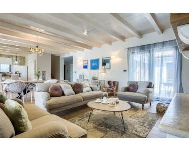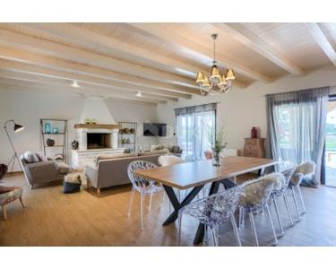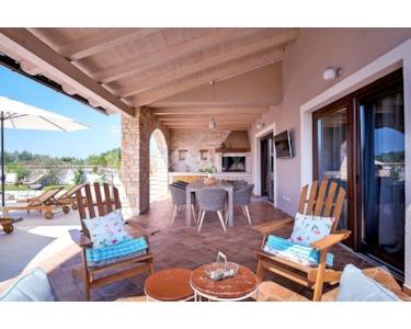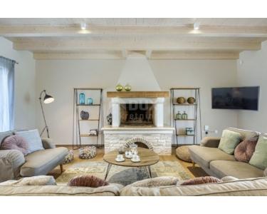 Inmitten von Olivenfeldern und Weinbergen in abgelegener Lage und getrennt vom Rest des Dorfes gelegen, stellt es eine ideale Gelegenheit für alle dar, die ihre eigene Ecke des Paradieses und eine Flucht aus dem Stadtleben suchen. Die Villa besteht aus insgesamt 280m2 Wohnfläche, die sich über zwei Etagen erstreckt. So befinden sich im Erdgeschoss neben einer kleineren Lobby ein Wohnzimmer, ein Esszimmer und eine modern ausgestattete Küche mit eigenem Vorratsraum in einem größeren „Open Space“-Bereich, der ganztägig von Tageslicht erhellt wird von der aus man durch eine große Glaswand auf eine überdachte Terrasse mit Sommerküche und Blick auf den umzäunten und gepflegten Garten gelangt. Das Wohnzimmer ist wie der Rest der Villa nach einem hohen Standard und einem modernen Ansatz eingerichtet, so dass der Raum attraktiv für das Auge, aber auch funktional und nutzbar ist. Alle modernen und derzeit bekanntesten Innendekorationstechniken wurden verwendet. Im Erdgeschoss befinden sich neben dem Wohnzimmer auch ein Gäste-WC, sowie zwei Schlafzimmer, die jeweils über ein eigenes Bad verfügen. Wichtig zu beachten ist, dass jedes Zimmer und Bad auf seine eigene Weise personalisiert ist und bei der Dekoration nicht auf das „Copy-Paste“-Prinzip zurückgegriffen wurde. Eine Innentreppe führt ins Obergeschoss, wo sich zwei weitere Schlafzimmer befinden, die jeweils über ein eigenes Badezimmer verfügen, sowie ein gemeinsamer Ausgang zur überdachten Terrasse (eigentlich Baladur), von der man einen direkten Blick auf endloses Grün und Wälder hat . Wie bei den Zimmern im Erdgeschoss wurde auch bei den Zimmern und Bädern im Obergeschoss das gleiche Gestaltungsprinzip angewandt, jedes ist auf seine Weise besonders und hat seine eigenen Details, die es unterscheiden. Besonders hervorzuheben sind: * die im Erdgeschoss gelegene Taverne mit separatem Eingang. Mit einem größeren Kamin und einem größeren Esstisch ist es eine ideale Option, um Freunde und Familie an Sommerabenden oder in kälteren Jahreszeiten zu unterhalten. * dann ein Spa-Bereich mit einer größeren Sauna, einem Whirlpool und einer speziellen Wärmebank zum Entspannen. Der Hof von 2800 m2 ist komplett eingezäunt und bietet Parkplätze für 6 Autos, von denen 4 überdacht sind. Neben einer Handvoll Grünflächen, die von einem automatischen Bewässerungssystem gepflegt werden, gibt es auch einen 50 m² großen Swimmingpool mit beheiztem Wasser und einen Strand. Darüber hinaus bietet Ihnen diese Villa zusätzliche Einrichtungen wie Tennis- und Basketballplätze sowie 7-Loch-Minigolf. Eine hervorragende Option als Familienhaus oder als touristische Investition, wenn man bedenkt, dass die Immobilie bereits vermietet ist. Zusätzliche Informationen: * Die Villa wird komplett ausgestattet verkauft * Sie verfügt auch über ein Alarm-, Video- und Sensorsystem * Ventilatorkonvektoren + Klimaanlagen wurden in den Räumen zum Heizen und Kühlen installiert * ES BESTEHT DIE MÖGLICHKEIT, EIN ZUSÄTZLICHES GEBÄUDE VON 2053 M2 ZU KAUFEN. LAND!