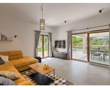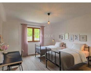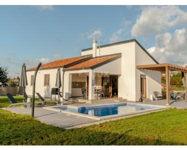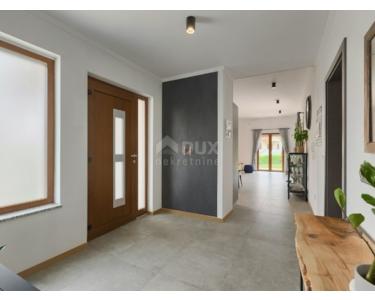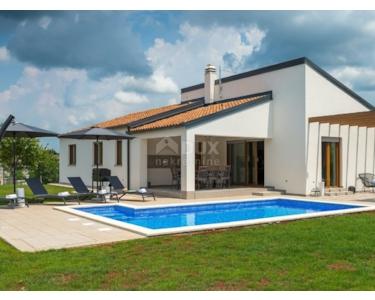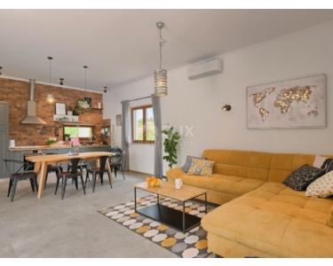 Im Zentrum von Istrien steht eine moderne Villa mit Swimmingpool und großem Garten zum Verkauf. Die Villa besteht aus einem Wohnzimmer, einer Küche, zwei Badezimmern und zwei Schlafzimmern. Jedes Schlafzimmer ist mit Klimaanlage und eigenem Bad ausgestattet. Alle Zimmer befinden sich im Erdgeschoss, daher finden Sie dort auch eine großzügige Küche mit Ess- und Wohnzimmer, die in einem offenen Konzept miteinander verbunden sind. Die Einrichtung ist minimalistisch mit interessanten Details und in natürlichen Farben gehalten. Große Glastüren sorgen für viel Licht und einen schönen Blick auf den Garten. Backsteinelemente werden durch sorgfältig ausgewählte Details ergänzt, die dem Raum eine urbane Atmosphäre verleihen. Von hier aus erreichen Sie einen großen Garten mit Swimmingpool. Es gibt auch einen Speisesaal im Freien mit Blick auf den Pool. Das Haus wurde in der ersten Phase mit einer Fußbodenheizung ausgestattet und verfügt auch über einen Schornstein. Ideale Immobilie für Familienleben oder touristische Vermietung.