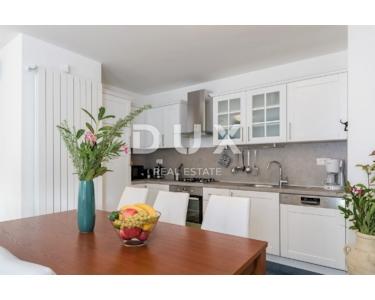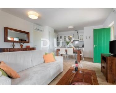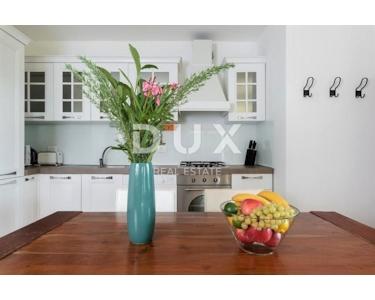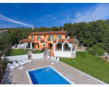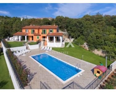 Unweit von Rabac und Labin steht eine Villa in begehrter Lage zum Verkauf. Die Fläche dieser gut gebauten Villa beträgt 159 m². Es erstreckt sich durch Erdgeschoss und Obergeschoss und ist vertikal in zwei Wohneinheiten von je 79 m² geteilt. Beide Wohneinheiten sind praktisch ausgestattet und möbliert. Im Erdgeschoss verfügt jede Wohneinheit über ein Wohnzimmer, ein Esszimmer und eine Küche mit Zugang zu einer überdachten Terrasse, ein Badezimmer und einen großzügigen Abstellraum, während sich in den Obergeschossen zwei Schlafzimmer, ein Badezimmer und eine Terrasse befinden. Den zentralen Platz auf dem umzäunten und gärtnerisch angelegten Garten mit Bewässerungssystem, von dem aus man einen Blick auf die Altstadt hat, nimmt ein 54 m² großer Swimmingpool mit Liegewiese ein. Diese Immobilie ist eine ideale Gelegenheit für das Familienleben oder als Investition zur Vermietung für touristische Zwecke.
