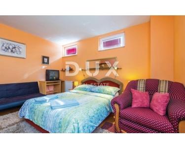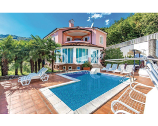 Wir verkaufen eine wunderschöne Villa mit Pool und Garage in der Nähe des Zentrums von Opatija. Die Villa befindet sich in einer schönen und ruhigen Lage, umgeben von viel Grün, was dem Haus absolute Ruhe und Privatsphäre verleiht. Das Untergeschoss, das Erdgeschoss und der erste Stock befinden sich auf 489 m2. Im Untergeschoss gibt es eine Sauna, Bad + WC, Weinkeller, Küche, Taverne und 2 Schlafzimmer mit Doppelbett, gefolgt von einem Erdgeschoss bestehend aus einem großen Wohnzimmer, Küche, Esszimmer, Wohnzimmer, WC und zwei Terrassen und schließlich Obergeschoss mit drei Schlafzimmern - jedes mit eigenem Bad, WC, Doppelbett und Balkon. Im Garten befindet sich ein Entspannungsbereich, bestehend aus einem beheizten Pool und Whirlpool mit Sonnendeck, einem großen Kamin und einem Tisch mit der Möglichkeit der Abdeckung. Eine Immobilie, an der Sie sich sicher erfreuen werden!