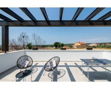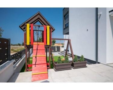 Wir bieten eine moderne Villa, die sich in einer kleineren und ruhigen Wohngegend befindet und alles bietet, was Sie für einen sicheren Aufenthalt das ganze Jahr über benötigen. Es ist eine moderne und neu gebaute Villa mit insgesamt 150 m2 Wohnfläche auf einem Grundstück von 431 m2. Hochwertiger Bauansatz und modernes Design ziehen sich durch alle Räume der Villa. So verfügt das komplett offene Erdgeschoss über ein Wohnzimmer mit Küche und Esszimmer, eine Speisekammer, ein Gästebad und ein Schlafzimmer mit eigenem Bad und Zugang zu Terrasse und Garten. Der Raum wird mit Hilfe von großen Glaswänden, durch die auch ein Ausgang zum Garten und zu einer größeren überdachten Terrasse besteht, vom Tageslicht ungehindert. Eine Innentreppe führt bequem in die obere Etage, wo sich zwei weitere Schlafzimmer befinden, von denen jedes über ein eigenes Badezimmer verfügt, und von der ersten Etage aus eine große Terrasse von ca. 25 m2 mit Blick auf das Meer und die Brijuni-Inseln . Es gibt einen 32 m² großen Swimmingpool im umzäunten und gepflegten Garten sowie einen Außengrill und zusätzliche Einrichtungen für die Kleinsten. Wasser, Strom und Abwasser sind auf der überdachten Außenterrasse verlegt, während die Außenküche mit dem Schornstein verbunden ist, so dass ein Außenkamin installiert werden kann. Die Villa verfügt über eine Videoüberwachung und eine Alarmanlage. Sehr geehrte Kunden, dies ist ein ideales Haus für einen Urlaub mit Familie und Freunden oder als Investitionsmöglichkeit im Tourismus.