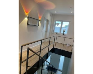 Im Obergeschoss beleuchten Bodenlichter mit Bewegungssensor den Flur in der Nacht.