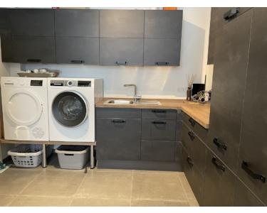 Der HWR ist in anthrazit möbliert und ebenfalls mit einer Spüle ausgestattet.
