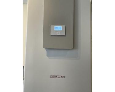 Geheizt wird mit einer Stiebel Elton Luft-/Wärmepumpe mit Kühlfunktion für die heißen Sommertage