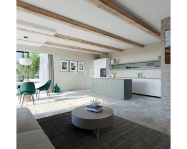 In idyllischer Lage mit bezauberndem Panoramablick auf die Umgebung steht eine moderne Villa zum Verkauf. Dieses Anwesen ist ein ideales Beispiel für Luxus, der eine Verschmelzung von zeitgenössischer Architektur und natürlicher Umgebung darstellt. Die Kombination aus traditionellen Elementen und moderner Architektur hat ein zeitloses Design erreicht, das sich in die natürliche Umgebung einfügt. Neben der Funktionalität wurde bei einer äußerst professionellen Planung besonders auf die Grenzen zwischen Innen und Außen geachtet und durch das kaskadierende Gelände eine ideale Kommunikation zwischen Garten und Villa erreicht. Beim Bau wurde darauf geachtet, nur hochwertige Baumaterialien zu verwenden. Die Villa umfasst 156 m² Wohnfläche, die elegant auf zwei Etagen angeordnet sind; Erdgeschoss und Obergeschoss. Auf der gleichen Ebene wie das Obergeschoss bietet eine sorgfältig gestaltete und sorgfältig angeordnete Auffahrt Stellplätze für zwei Fahrzeuge. Der Eingang zur Villa befindet sich im ersten Stock, wo sich drei Schlafzimmer mit eigenem Bad, ein Abstellraum mit Waschküche, ein Flur und ein Balkon befinden. Vom ersten Stock führt die Treppe ins Erdgeschoss, wo sich ein offenes und großzügiges Wohnkonzept ergibt, das Wohnzimmer, Esszimmer und Küche, ein Schlafzimmer mit eigenem Bad, einen Abstellraum und eine Toilette vereint. Auf der gleichen Ebene des Erdgeschosses befindet sich eine mit einer Pergola überdachte Außenterrasse. Von dieser Terrasse führt eine Treppe hinunter zur zweiten Ebene, wo sich ein 38 m² großer beheizter Überlaufpool mit Sonnendeck und eine Sommerküche mit einem von einer Pergola überdachten Kamin befindet. Ein weiterer kleiner Abstieg führt zu einem grünen Rasen mit einem Whirlpool mit einer hölzernen Sonnenterrasse, wo der Garten den Hang hinaufführt und mit einem Olivenhain endet. Die Villa ist mit einer Klimaanlage zum Heizen und Kühlen und einer Fußbodenheizung ausgestattet, die an eine Wärmepumpe angeschlossen ist. Der Hof ist gärtnerisch angelegt und eingezäunt und garantiert absolute Privatsphäre und Ruhe. Dieses perfekt integrierte Anwesen bietet dank erstklassiger Einrichtungen und hochwertiger Ausstattung maximalen Komfort und Bequemlichkeit und ist eine ideale Gelegenheit für ein friedliches Familienleben, aber auch eine erfolgreiche touristische Vermietung. Die Fertigstellung des Baus und der Möblierung des Objekts ist für Herbst 2023 geplant.