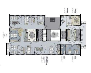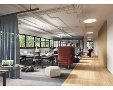- Abgehängte Decken mit bildschirmarbeitsplatzgerechter Beleuchtung: Gewährleisten eine angenehme Arbeitsatmosphäre.