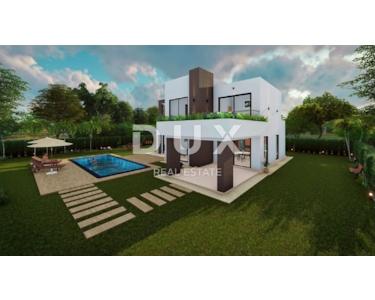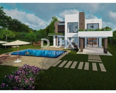 Unweit von Rabac und Labin steht eine attraktive Villa in Alleinlage zum Verkauf. Die Villa verbindet einen modernen Stil mit einer malerischen Landschaft und wurde nach den neuesten technischen Standards gebaut. Die Aufteilung des Innenraums bietet ein harmonisches Wohnambiente auch für höchste Ansprüche. Die Fläche dieser zeitgenössischen Villa beträgt 210 m² und verteilt sich auf zwei Etagen; Erdgeschoss und Obergeschoss. Der von Tageslicht durchflutete Wohnraum im Erdgeschoss ist offen gestaltet und vereint Wohnzimmer, Esszimmer und Küche mit Zugang zur überdachten Terrasse. Im Erdgeschoss gibt es außerdem ein Schlafzimmer mit eigenem Bad und Zugang zur Terrasse, eine Toilette und einen Abstellraum. Im ersten Stock gibt es ein Badezimmer und zwei Schlafzimmer mit eigenen Terrassen. Neben der Villa befindet sich ein 32 m² großer Swimmingpool mit Sonnendeck. Der Hof, wo Ruhe, Frieden und Harmonie mit der Natur in jeder Ecke zu spüren sind, ist angelegt und eingezäunt. Diese Villa mit markantem Design, am Ende eines Baugebiets gelegen, ist die perfekte Immobilie für das Familienleben oder als Kapitalanlage zur Vermietung für touristische Zwecke. Die Villa ist in Fertigbauweise, befindet sich im Bau und wird nach dem "schlüsselfertigen" System verkauft, das es dem zukünftigen Eigentümer ermöglicht, die endgültige Anordnung nach persönlichen Vorlieben zu wählen. Der geplante Abschluss der Arbeiten wird Ende 2022 erwartet.