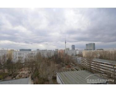 Helle, modern möblierte, vollständig sanierte Drei-Zimmer-Wohnung in Berlin Friedrichshain, zentral gelegen in der Nähe vom Bahnhof Alexanderplatz, mit wundervollem Blick zum Fernsehturm. Die Wohnung bietet viel Stauraum, ein modernes, helles Wohnzimmer mit Panoramablick und eine offene Einbauküche. Das Bad hat eine Dusche. Das Schlafzimmer ist mit Doppelbett und Einbauschrank ausgestattet