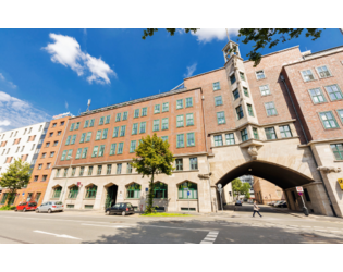 Nahe des Essener Hauptbahnhofes, „An der Reichsbank“, trumpft dieses denkmalgeschützte Gebäude mit seiner eindrucksvollen Sandstein- und Klinkerfassade.