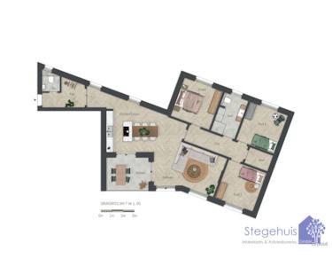 Die Raume der Wohnung Nr. 7 im 1e Obergeschoss (ca. 123 m²) sind wie folgt aufgeteilt: