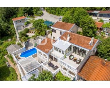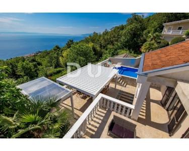 Diese wunderschöne Villa befindet sich in ruhiger Lage mit wunderschönem Blick auf die Kvarner Bucht. Es befindet sich auf einem gepflegten und eingezäunten Grundstück in der Nähe von Opatija. Die Gesamtwohnfläche der Villa mit Terrassen beträgt 430 m2 und befindet sich auf einem terrassierten Grundstück von 2000 m2. Es besteht aus 3 separaten Wohneinheiten, die teilweise durch Außentreppen verbunden sind. Die größte Einheit erstreckt sich über drei Etagen, die durch Innentreppen verbunden sind. Zahlreiche Terrassen ermöglichen es jedem, einen Platz für sich zu finden. Auf dem weitläufigen 2000 m2 großen Garten befinden sich ein Swimmingpool mit Meerblick, verschiedene Einrichtungen sowie Parkplätze. Korrekte Dokumentation und Eigentum. Eine ideale Immobilie für das Familienleben oder als Investition in ein bereits etabliertes touristisches Vermietungsgeschäft.