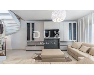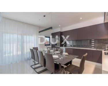 Nur wenige hundert Meter vom strengen Zentrum von Novigrad, den Stränden und allen Einkaufs-, Kultur-, Bildungs- und Freizeiteinrichtungen entfernt, steht ein Luxushaus mit Swimmingpool zum Verkauf. Neben der Lage zeichnet sich das Haus durch Bauqualität, modernes Erscheinungsbild, Komfort und luxuriöse Ausstattung aus. Die Fläche des Hauses von 180 m² ist elegant in ein Erdgeschoss und einen ersten Stock und eine Dachterrasse aufgeteilt. Das Erdgeschoss besteht aus einem geräumigen Wohnzimmer, das mit einem offenen Esszimmer und einer Küche mit Zugang zu einer überdachten Terrasse, Schlafzimmern, Badezimmern und Abstellräumen kombiniert ist. Im Obergeschoss befinden sich drei Schlafzimmer mit eigenem Bad, zwei überdachte Terrassen und eine Treppe, die zur Dachterrasse führt. Auf der großzügigen Dachterrasse mit Blick auf das Meer und die Stadt befindet sich ein Whirlpool. Das Heizen/Kühlen des Hauses erfolgt über Klimaanlagen und Fußbodenheizung, und die Warmwasserbereitung erfolgt über Sonnenkollektoren. Neben dem Haus, auf dem gepflegten und umzäunten Garten, befindet sich ein 30 m² großer Swimmingpool mit gepflasterter Sonnenterrasse, eine Sommerküche und ein von einer Pergola überdachter Loungebereich. Das Anwesen ist komplett ausgestattet und möbliert und wird als solches verkauft. Dieses Luxushaus ist eine ideale Immobilie für das Familienleben oder als Investition zur Vermietung für touristische Zwecke.