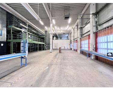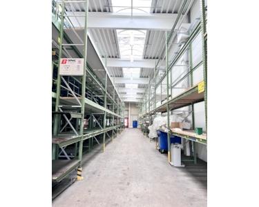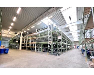- Regallager mit verschiedenen Fachgrößen und Aufzug (1,25 t) sowie Staplerandienung