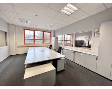 Die Immobilie kann teilweise regaliert und möbliert mit z. B. Schreibtischen, Bürostühlen, Rollcontainer usw. übergeben werden.