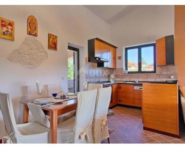 ISTRIEN, MEDULIN - Ein Haus mit Swimmingpool, 400 m vom Strand Vrh oder Punta Istra, wie es allgemein genannt wird, gehört zu einer der touristischen Städte der Halbinsel und zu einem der zwanzig berühmtesten Touristenziele an der Adria - Medulin. Medulins reiche kulturelle Vergangenheit, einst ein kleines Fischerdorf, hat eine günstige geografische Lage, einen gut geschützten Hafen und ein fruchtbares Hinterland, das zu seiner wirtschaftlichen Entwicklung beigetragen hat. Die kleineren Orte Banjole, Pješčana uvala (bekannt für ihre Sandstrände), Pomer, Premantura, Vinkuran und Vintijan gehören ebenfalls zur Gemeinde Medulin. Zur Stadt Medulin gehört auch die kleine Halbinsel Vižula, die eine archäologische Stätte ist und seit 1974 unter Denkmalschutz steht. Premantura liegt am südlichsten Punkt der Halbinsel und taucht in das blaugrüne Meer ein, was eine herrliche Szenerie schafft. Seine 30 Kilometer Küste, unberührte Buchten und Strände, unbewohnte Inselchen, einzigartige Flora und atemberaubende Landschaften machen es einzigartig, und sein Meer ist eines der saubersten im Mittelmeerraum. Ein Haus mit Swimmingpool steht zum Verkauf, 400 m vom Meer entfernt, an einem Ort, der von einer Natur umgeben ist, mit der sich viele Orte nicht rühmen können. Das als Mehrgeschosshaus konzipierte Haus erstreckt sich über Erdgeschoss und Obergeschoss. Es besteht aus vier Schlafzimmern, zwei Wohnzimmern mit Küchen und Esszimmern mit Ausgängen zu überdachten Terrassen, zwei Badezimmern und einem Abstellraum. Durch die durchdachte Raumaufteilung ist es möglich, mit minimalen baulichen Eingriffen zwei getrennte Wohneinheiten zu realisieren. Der weitläufige Garten mit Bewässerungssystem ist komplett eingezäunt und angelegt. Das Konzept eines sorgfältig angelegten Gartens mit mediterranem Touch wird durch einen beheizten Pool von 56 m² mit Sonnendeck, eine überdachte Sommerküche und einen sorgfältig gepflegten Olivenhain mit 50 Olivenbäumen vervollständigt. Der Olivenhain mit einer Fläche von 1.645 m² ist in der Natur ein Baugrundstück mit T2-Zweck, das per Definition ein Gebiet umfasst, das für den Bau eines Ferienortes mit dazugehörigen Einrichtungen bestimmt ist. Das Anwesen ist komplett ausgestattet und möbliert und wird als solches verkauft. Die außergewöhnliche Mikrolage und die räumliche Organisation des Innen- und Außenbereichs dieses Anwesens ist sicherlich beachtenswert, sowohl wegen der Möglichkeit der ganzjährigen Nutzung und des ruhigen Familienlebens als auch als Kapitalanlage für touristische Zwecke.