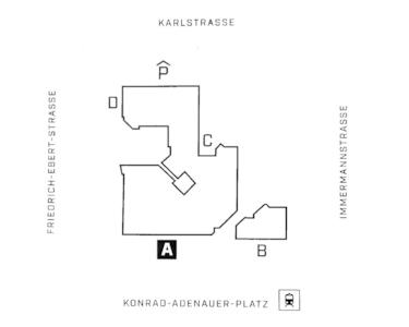 Vier separate Gebäudeteile (A, B, C, D) sichern den Mietern eine große Individualität zu. Darüber hinaus können in der objekteigenen Tiefgarage Stellplätze für Mitarbeiter und Besucher angemietet werden.