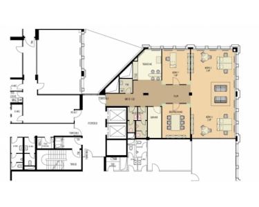 Die flexiblen Grundrisse bieten die Möglichkeit, individuelle Aufteilungen (z.B. Großraum- oder Einzelbürostrukturen) zu verwirklichen. Darüber hinaus trägt die ansprechende Natursteinfassade zu einem repräsentativen Gesamteindruck des Büro- und Geschäftshauses bei. Insgesamt 7 Personenaufzüge sorgen für einen reibungslosen Zugang zu den Büroflächen.