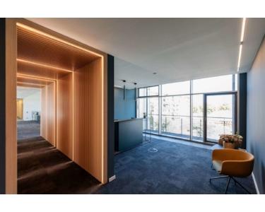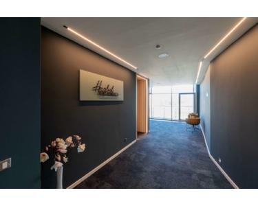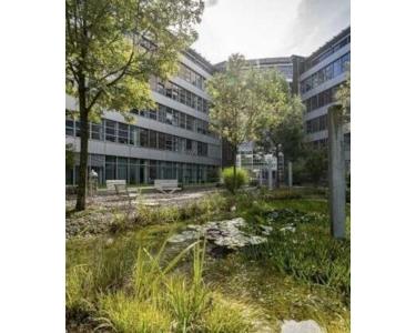 - EDV-Verkabelung über Hohlraumboden mit flexiblen Bodentanks im Bürobereich und durchgängiger Doppelboden im Flurbereich - außenliegender Sonnenschutz elektrisch, raumweise gesteuert - Be- und Entlüftung der Büroflächen mit Spitzenkühlung - lichte Büroraumhöhe von ca. 3,40 m mit bodentiefen Fenstern zum Innenhof sowie zur Straßenseite - hochwertig ausgestattete Teeküchen - 4 Personenaufzüge - Zutrittskontrolle durch Codekartenleser - harmonischer, begrünter Innenhof mit idyllischer Teichanlage - Lagerflächen von 13 m² bis 246 m² à € 9,00 anmietbar - bis zu 26 TG-Plätze à € 100,00 anmietbar