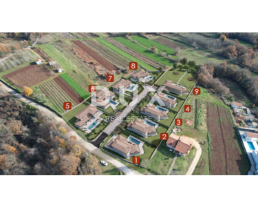 Es gibt viele Sehenswürdigkeiten, für die die Gemeinde Kanfanar berühmt ist. Von der wunderschönen grün-blauen Oase des Lim-Kanals bis zu den Ruinen der mittelalterlichen Stadt Dvigrad, zahlreichen archäologischen Stätten, einem reichen sakralen Erbe, lokalen Produkten und dergleichen. In Kanfanar finden Sie die Ruhe, die für kleine Dörfer im Hinterland Istriens typisch ist, obwohl Sie alles in Ihrer Nähe haben. Ein kleiner Ort, wo das milde mediterrane Klima mit den natürlichen Besonderheiten des inneren Istriens kombiniert wird, 15 Autominuten von Rovinj und nur 2 km von der Autobahnausfahrt entfernt. In einem kleinen Dorf, nur wenige Kilometer von dieser süßen kleinen Stadt entfernt, verkaufen wir diese schöne autochthone Villa, die Teil eines geschlossenen Komplexes ist, der 9 mediterrane Villen mit Swimmingpool enthalten wird. Villa 1 wurde als zweistöckiges Haus mit einer Gesamtnettofläche von 167 m2 konzipiert. Das Erdgeschoss besteht aus einem überdachten Eingang, Flur, Küche, Wohnzimmer und Esszimmer nach dem Openspace-Konzept, Speisekammer, zusätzlichem Abstellraum, einem Schlafzimmer mit eigenem Bad, zusätzlichem Badezimmer und einer großen überdachten Terrasse mit Außenküche. Eine Innentreppe führt in den ersten Stock, wo sich zwei Schlafzimmer mit jeweils eigenem Bad befinden. Draußen gibt es einen weiteren Abstellraum für den Maschinenraum des Pools. Auf dem Grundstück von 775 m2 gibt es die bereits erwähnte Sommerküche mit Grill, einen schönen Swimmingpool von 8x4 m2 mit einem mit Stein bedeckten Sonnendeck und zusätzlichem Grün mit Pflanzen, die durch das Bewässerungssystem bewässert werden. Für Ihre Blechtiere stehen 2 überdachte, mit Beton gepflasterte Parkplätze zur Verfügung. Im Erdgeschoss und im ersten Stock ist eine Fußbodenheizung geplant, während die Kühlung durch Klimaanlagen (jedes Zimmer + Wohnzimmer) erfolgt. Das Haus ist nach Süden ausgerichtet und fast ganztägig Licht und Sonne ausgesetzt, wobei gleichzeitig maximale Privatsphäre für jedes einzelne Haus gewährleistet ist. Das Haus wird im typisch istrischen Stil gebaut, wobei der Schwerpunkt auf den Materialien gelegt wurde, mit denen solche Häuser einst gebaut wurden. Die Demit-Fassade ist 10 cm dick und kommt an der Fassade in Kombination mit Stein vor. Innen- und Außenholzschreinerei. Keramikböden, Steintreppen. Schmiedeeiserne Handläufe und Geländer. Das Eingangstor zur Siedlung wird von einem Elektromotor angetrieben und über eine Fernbedienung gesteuert. Dieses schöne zweistöckige Haus ist ideal für eine Investition in eine touristische Vermietung oder für ein Einfamilienhaus! Die Entfernung von Pula beträgt 30 km und von Rovinj nur 20 km, was den Bewohnern die Nähe zu städtischen Gebieten und zum Meer bietet, aber gleichzeitig die Möglichkeit bietet, in der Ruhe und Stille eines charmanten istrischen Dorfes zu leben.