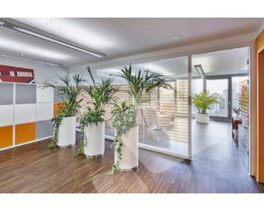 Die Flächen können flexibel aufgeteilt werden. Die Achsmaße liegen zwischen 1,25m und 2,50m. Die Raumtiefen betragen zwischen 3,30m und 5,50m. Die Mieteinheiten haben teilweise bodentiefe Fenster, (Aluminium), Balkone oder Zugänge zu Dachterrassen. Sämtliche Mieteinheiten verfügen über eine Teeküche.
