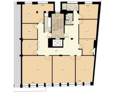 Das Fassadenachsraster bietet vielfältige Möglichkeiten zur Raumaufteilung: Von Einzel- über Gruppen- bis zu Großraumbüros. Die aktuell anzutreffenden Grundrissvarianten können auf Mieterwunsch verändert werden und sind so auf diverse Anforderungen zukünftiger Nutzer entsprechend anpassbar. Bei Neubezug gehört es zur angenommenen Standardausstattung, dass in Büro-, Konferenz und Flurflächen stuhlrollengeeignete Bodenbeläge verlegt sind und an