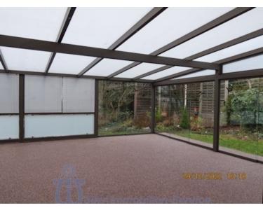 Darüber wurde ein ca. 45 m² großer Wintergarten in Aluminiumkonstruktion errichtet, der als großzügige Erweiterung des Wohn-Essbereiches genutzt werden kann.