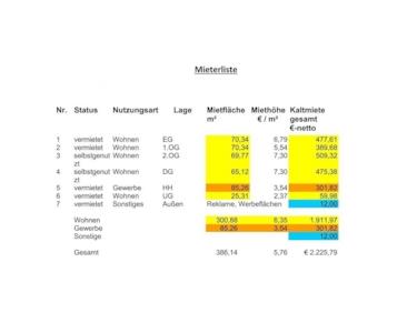 - Kaltmiete Gewerbe kombiniert: 301,87 Euro (monatlich)
