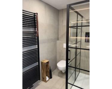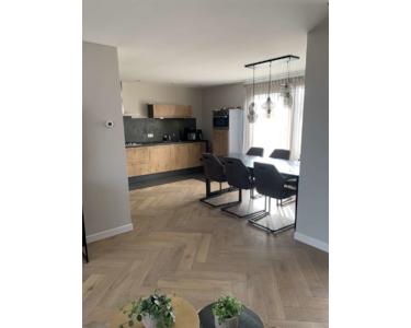 Schönes, luxuriöses, freistehendes Chalet mit angelegtem Garten mit überdachter Terrasse und Holzveranda mit Beleuchtung. Teilweise verputzt und teilweise mit Holz verkleidet. Oben isoliert. Das Chalet hat ein geräumiges Wohnzimmer mit großen Fenstern und Eichenholzboden und Klimaanlage. Geräumige Küche mit Essecke für 6 Personen, Küche mit kombiniertem Backofen und Geschirrspüler, großem 6-Flammen-Gasherd mit Dunstabzugshaube und Kühlschrank.