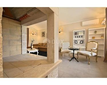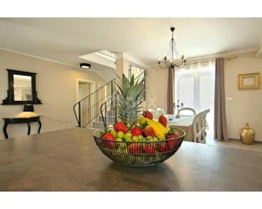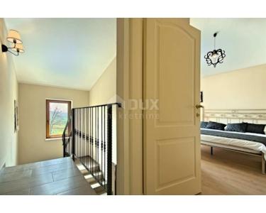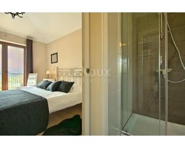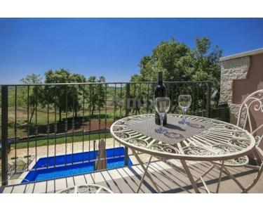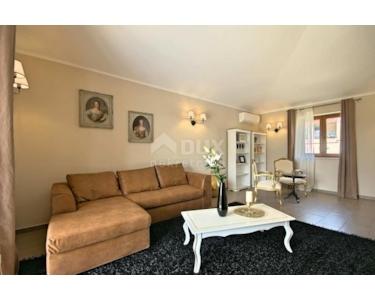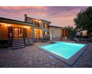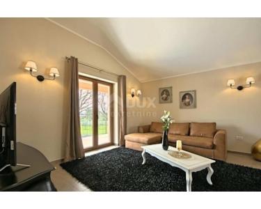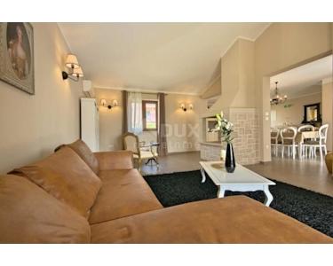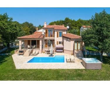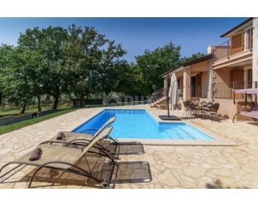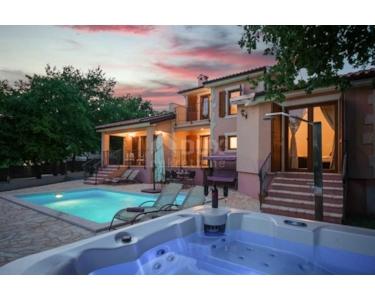 Äußerst komfortable und luxuriöse Landvilla mit Swimmingpool am Rande des Dorfes im Hinterland von Poreč. Das Haus wurde 2016 erbaut und befindet sich in äußerst ruhiger Lage, umgeben von einem Eichenwald und mit Blick auf Felder und einen Olivenhain. Auf einem eingezäunten Grundstück von 820 m² bietet diese Schönheit einen Außenpool von 24 m², einen Whirlpool für 5 Personen, einen Tisch mit Stühlen zum Essen für 8 Personen, einen Grill und 3 Parkplätze. Die Villa hat eine Fläche von 165 m² auf zwei vollklimatisierten Etagen. Im Erdgeschoss finden wir ein gut ausgestattetes Wohnzimmer mit einer ausgestatteten Küche, einem Esstisch und einem Wohnzimmer mit Ledermöbeln, offenem Kamin und SAT-TV, ein Zimmer mit eigenem Bad, ein weiteres Zimmer mit eigenem Bad mit Zugang zur Terrasse und ein Gäste-WC. Im ersten Stock des Hauses befinden sich zwei Zimmer mit einem gemeinsamen Bad mit Zugang von beiden Zimmern, eines der Zimmer hat einen Balkon. Bedenkt man, dass die Villa während der touristischen Saison ein gut etabliertes Vermietungsgeschäft hat, kann sie als hervorragende Investition dienen, aber auch als kleines Paradies für diejenigen, die ihre 4 Wände gerne in Ruhe genießen möchten.