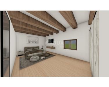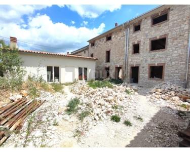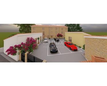Im Zentrum von Juršići, in einer ruhigen Sackgasse, befindet sich dieses neue Projekt eines dreistöckigen Steinhauses mit Swimmingpool und Nebengebäude.