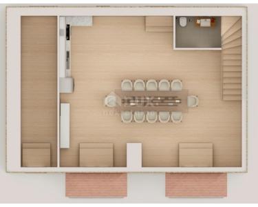 Im Erdgeschoss des Hauses gibt es ein Wohnzimmer, eine Küche, ein Esszimmer und ein kleines Badezimmer mit Toilette. Das Erdgeschoss hat auch einen Ausgang zur Terrasse mit Zugang zum Pool.