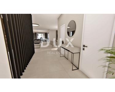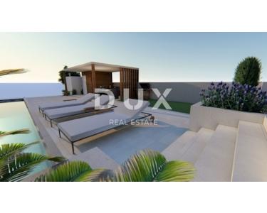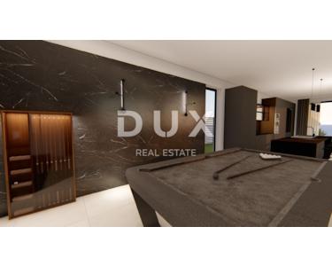 Moderne Villa von 330 m2 zum Verkauf auf einem Grundstück von 1000 m2, bestehend aus Erdgeschoss und erstem Stock. Im Erdgeschoss gibt es einen Korridor, einen Maschinenraum, einen Abstellraum, einen Fitnessraum, ein Badezimmer mit Sauna, ein Billardzimmer (26 m2) und ein geräumiges Wohnzimmer von 30 m2, das mit der Küche und dem Esszimmer (30 m2) verbunden ist. Das Wohnzimmer führt zu einer überdachten Terrasse von 43 m2, vor der sich ein Swimmingpool, ein Sonnendeck und ein Sommerkamin mit Pergola befinden. Vom Erdgeschoss führt eine Innentreppe in den ersten Stock, wo sich fünf Schlafzimmer mit Einbauschränken und angeschlossenen Badezimmern sowie eine überdachte Terrasse befinden. Die Villa wird komplett möbliert verkauft. Der Hof ist weitläufig, so dass es neben dem Swimmingpool auch Ecken für Familientreffen und Erholung geben wird, von einem Kinderspielplatz bis zu einem kleineren Sportplatz, die alle von mediterraner Vegetation umgeben sein werden. Kaštela ist eine malerische Stadt in Mitteldalmatien, in unmittelbarer Nähe von Split, der größten kroatischen Stadt am Meer, Trogir, einer Stadt unter UNESCO-Schutz, und Solin, bekannt für sein antikes Salona aus der Römerzeit. Kaštela ist der Name für sieben kleinere, miteinander verbundene Städte entlang der Küste der Bucht von Kaštela. Sie sind 18 km von der Stadt Split entfernt, während sie nur 4 km vom Flughafen Split entfernt sind.