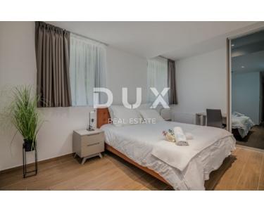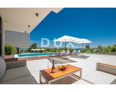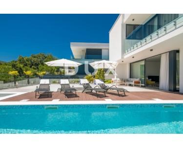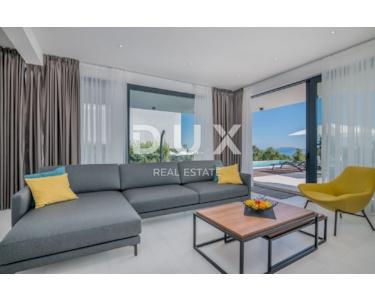 Mit einem der schönsten Ausblicke auf die Kvarner Bucht, in der Bucht gelegen, geschützt vor der Bora, gut gebaut und ausgestattet in hervorragender Lage, bietet dieses Haus einen unvergesslichen Aufenthalt. Seine Wohnfläche von 309 m2 erstreckt sich über drei Etagen – Untergeschoss, Erdgeschoss und Obergeschoss. Das Erdgeschoss von 111 m2 verfügt über ein geräumiges Wohnzimmer mit großen Glaswänden, Küche mit Essbereich, Schlafzimmer mit Bad en Suite und zusätzlichem WC. Auf der Etage von 172 m2 befinden sich vier Schlafzimmer mit eigenem Bad und Abstellraum. Ein Schlafzimmer hat auch eine geräumige Terrasse mit wunderschönem Meerblick. Im Untergeschoss dieser schönen Villa befindet sich ein Fitnessraum (12 m2), ein Heizungsraum (10 m2) und ein Poolmaschinenraum (4 m2). Das Haus ist mit Klimaanlage, Heiz- und Kühlsystem und Fußbodenheizung - Wärmepumpen - ausgestattet. Bei der Dekoration wurden nur hochwertige Materialien verwendet, wodurch die Villa den Status einer Luxusimmobilie erhält. Der Hof dieser Villa ist 540 m2 groß, wenn man die vom Haus belegte Fläche ausschließt, und die gesamte Grundstücksfläche beträgt 830 m2. Im Hof gibt es einen Garten, einen Swimmingpool (32 m2) mit Strand und 5 Parkplätze für Ihre Haustiere. Die Luftentfernung vom Meer beträgt nur 1.500 Meter und die Straße zum ersten Strand etwa 3 km. Die geplante Fertigstellung der Einrichtung der Villa ist für Ende April 2022 geplant, der Preis wird für die fertiggestellte Villa ausgedrückt. Der Käufer zahlt keine Grunderwerbssteuer, da der Preis die Mehrwertsteuer enthält. Ein ideales Haus für diejenigen, die vermieten möchten, aber auch als Gelegenheit für ein luxuriöses Familienhaus.