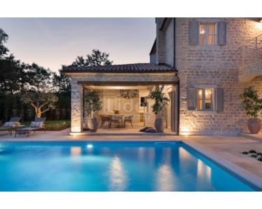 ISTRIEN - in der Nähe von Kanfanar, nur 23 km von Poreč und 26 km von Rovinj entfernt, steht eine schöne Villa zum Verkauf, eine Etage von 359 m2 Wohnfläche mit 876 m2 Garten und einem 50 m2 großen Swimmingpool.