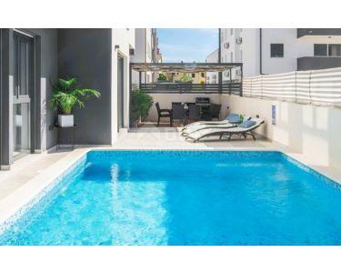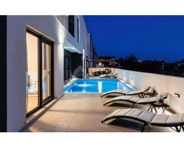 Wir haben die perfekte Kombination aus Komfort und modernem Stil für Sie gefunden.In der Nähe des Zentrums von Pula steht diese schöne Villa zum Verkauf, die eine perfekte Kombination aus Komfort und modernem Stil darstellt. Die Villa befindet sich auf einem Grundstück von 450 m2 mit einer Gesamtfläche von 208 m2. Es hat nicht weniger als sieben Schlafzimmer, drei Küchen und vier Badezimmer, und was diese Villa sicherlich schmückt, ist der 32 m2 große Swimmingpool. Der Wohnteil besteht aus drei Wohneinheiten, so dass sich im Erdgeschoss zwei Wohneinheiten mit einer Fläche von jeweils 52 m2 mit zwei Schlafzimmern, einem Badezimmer und einer Küche befinden, während sich im ersten Stock eine größere Wohnung befindet Einheit, mit einer Fläche von 104 m2, mit drei Schlafzimmern, Wohnzimmer mit Küche und Esszimmer und direktem Zugang zur Außenterrasse mit teilweisem Meerblick. Der Innenraum ist so gestaltet, dass er Spaß macht. Neben dem Swimmingpool verfügt das Haus also über weitere Unterhaltungsmöglichkeiten. Eines der Apartments im Erdgeschoss ist so eingerichtet, dass das Wohnzimmer in ein Spielzimmer mit Billard, Darts und Playstation verwandelt wurde. Im vollständig eingezäunten Garten befindet sich ein Swimmingpool mit Liegewiese und Grill.