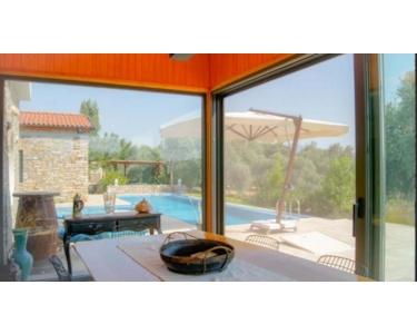 Steinhaus 270 qm. Terrassenfläche 350 qm. Der Garten ist 6 Hektar groß. 64 Olivenbäume, 150 Obstbäume insgesamt.
