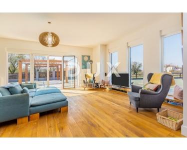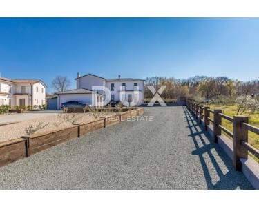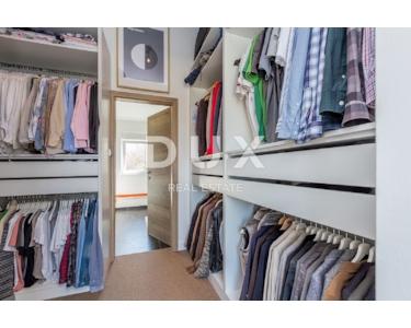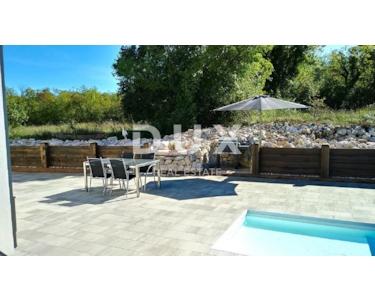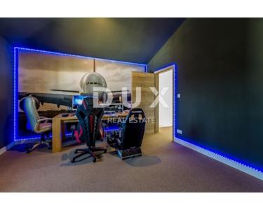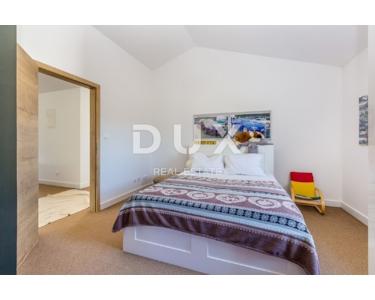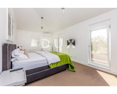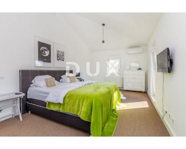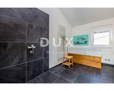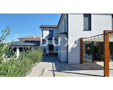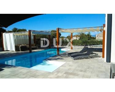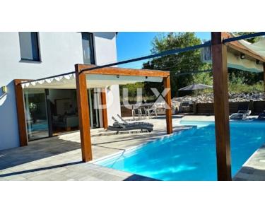 INSEL KRK - Moderne moderne Villa mit Pool und großem Garten im Zentrum der Insel. Es besteht aus zwei Etagen. Im Erdgeschoss gibt es ein großes integriertes Wohnzimmer, eine Küche und ein Esszimmer mit Zugang zur Terrasse und zum Sonnendeck am Pool. Das Erdgeschoss enthält auch eine Toilette, eine Waschküche und ein Arbeitszimmer, das bei Bedarf in ein Schlafzimmer umgewandelt werden kann. Der erste Stock ist durch eine Innentreppe verbunden und führt zu einer großen Eingangshalle, die die Funktion eines zweiten Wohnzimmers hat. Im Obergeschoss befindet sich ein großes Schlafzimmer mit eigenem Bad und einem großen begehbaren Kleiderschrank. Im Obergeschoss befinden sich zwei weitere Schlafzimmer, die derzeit miteinander verbunden sind und eines zu einem Partyraum umgebaut wurde, sowie ein großes Badezimmer. Das Haus ist im irischen Stil gestaltet, wobei der Wohnbereich viel Licht hat. Das Haus ist komplett möbliert und mit luxuriösen, hochwertigen und funktionalen, aber unaufdringlichen Möbeln ausgestattet. Im Wohnzimmer auf den Etagen gibt es einen "Bauernboden", hochwertiges Eichenparkett, Schreinerei ist hochwertiges PVC. Die jetzigen Besitzer haben dafür gesorgt, dass ein so großes Haus mit fantasievollen Details die Wärme eines Zuhauses bekommt. Diese Villa ist nicht als Ferienhaus gebaut, sondern ganzjährig bewohnbar. Es verfügt über eine Ölzentralheizung und bis zu sechs hochwertige Klimaanlagen. Das stärkste Kapital dieser Villa ist sicherlich der Garten von 1250 m2, komplett möbliert, mit einem großen Sonnendeck und einer Terrasse mit beheizten Pools. Neben dem Haus gibt es eine Garage mit Platz für zwei Autos, während im Hof noch mehr Parkplätze vorhanden sind.