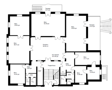 BUERO.flächen mit 1.311 m² Terrassen, Garten Stellplätzen in Stadtvilla am Rosental