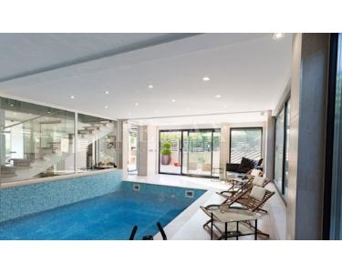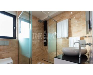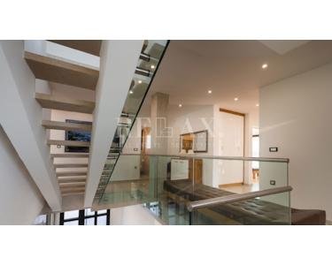 Eine Innentreppe führt in den ersten Stock, wo sich drei große, geräumige Schlafzimmer mit jeweils eigenem Ausgang zum Balkon, drei Badezimmer, ein Heizraum und eine Sauna befinden.