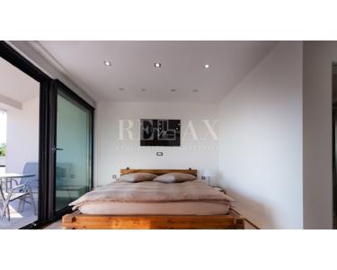 Auf der zweiten Etage des Hauses befindet sich ein Wohnzimmer, eine Küche, ein Schlafzimmer, ein Badezimmer mit WC und eine Loggia mit einem schönen Blick auf die Natur und das Meer.