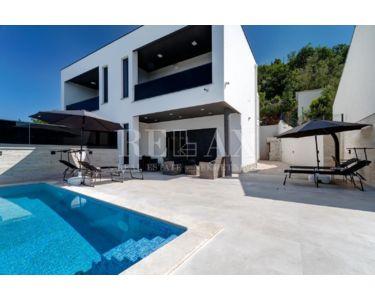 Ein Haus mit Swimmingpool und Garten mit wunderschönem Blick auf das Meer in Dramalj bei Crikvenica.
