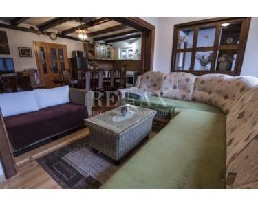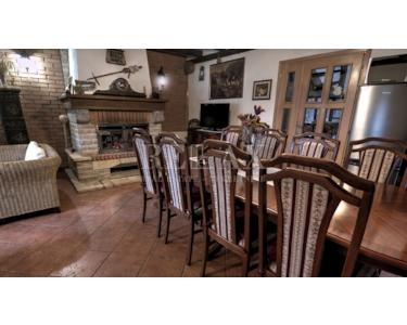 Das Haus besteht aus einer Eingangshalle, einer Küche, einem Badezimmer, einem Abstellraum, einem großen Wohnzimmer mit einem Esszimmer, das mit einem schönen Holzkamin dekoriert ist.