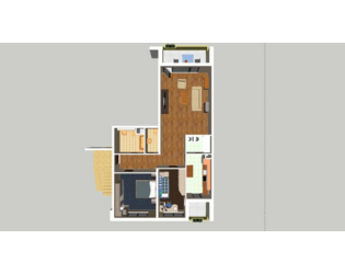 Flur, Bad, Abstellraum, Schlafzimmer, Zimmer, Küche mit Zugang auf den Balkon, Wohnzimmer mit Zugang auf den Balkon;