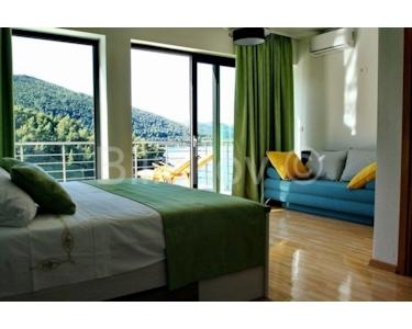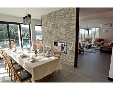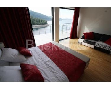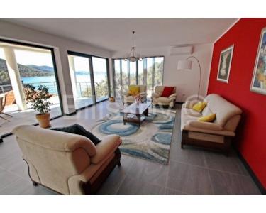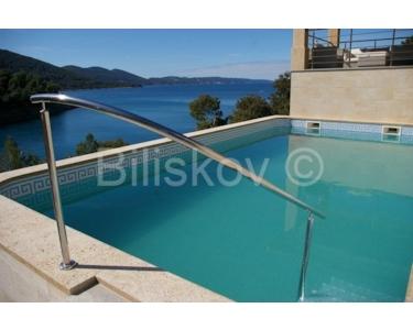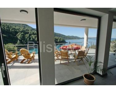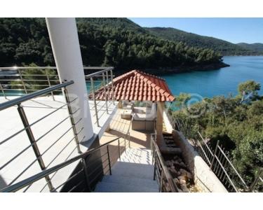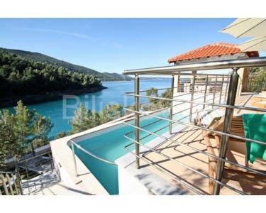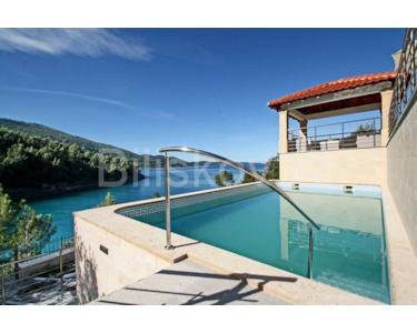 KORCULA, NORTH SIDE - neu erbaute moderne Villa mit Pool in der ersten Reihe zum Meer mit einem Liegeplatz für ein Boot. Die Wohnfläche der Villa beträgt 289 m2 und wurde auf einem Grundstück von 748 m2 gebaut. Im Erdgeschoss befindet sich ein Wohnzimmer mit Bad, einer Gesamtfläche von 45 m2, das als zusätzliches Wohnzimmer während des Aufenthalts am Pool konzipiert ist, und vor dem sich ein Sonnenplateau befindet, eine grosse Terrasse mit Pavillon und Pool. Im hohen Erdgeschoss von 94m2 gibt es eine Küche mit Essbereich, Wohnzimmer durch eine Glaswand von einer grossen Terrasse von 47m2 getrennt, Bad und Speisekammer. Im 1. Stock von 150m2 gibt es eine geräumige Eingangshalle und 4 Schlafzimmer, jedes mit Bad. Die Villa ist sehr gut gebaut und mit hochwertigen Möbeln und Geräten ausgestattet. Die Position bietet absolute Privatsphäre und befindet sich in einer ruhigen Bucht.